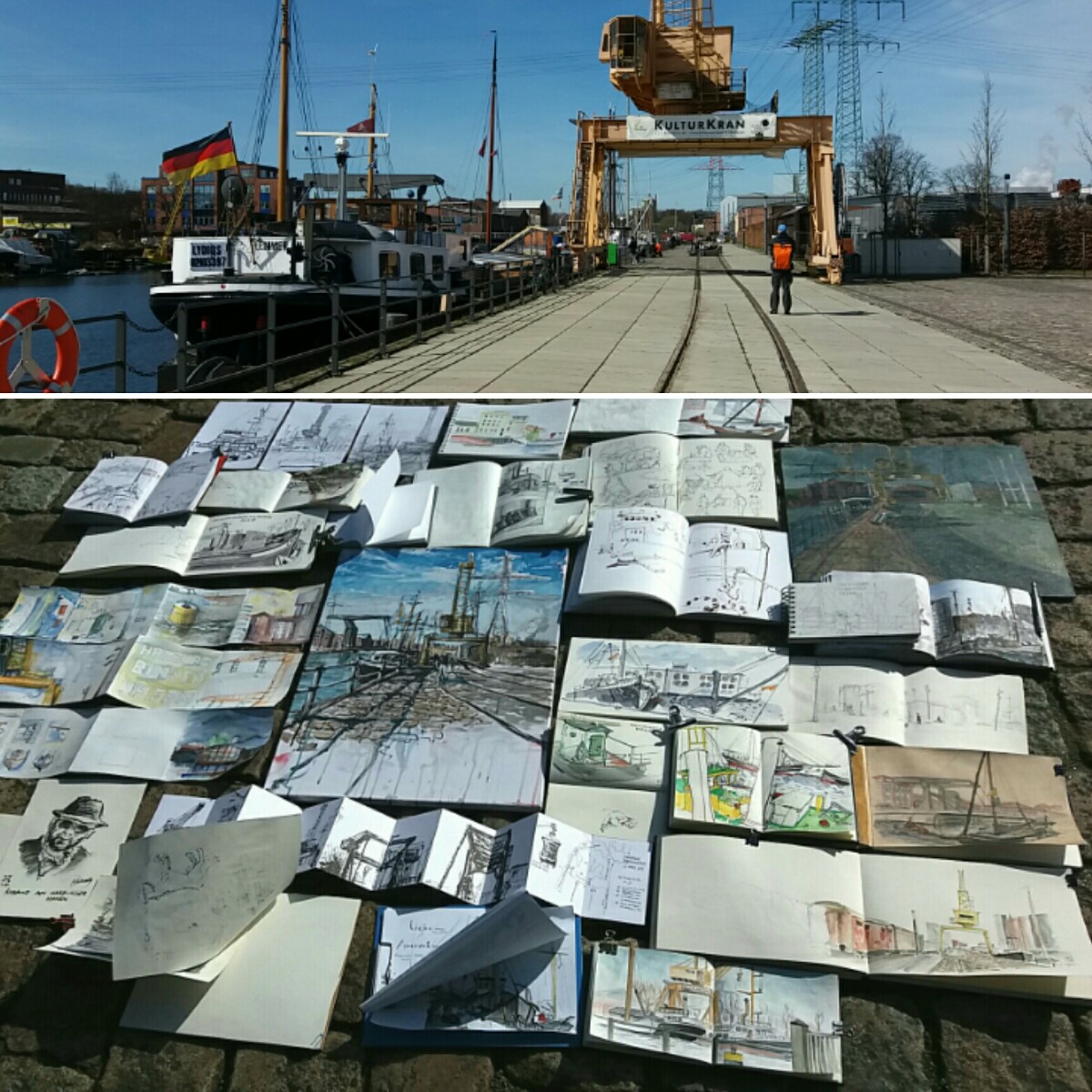 Harburger Hafen mit viel blauem Himmel Wir waren im Harburger Hafen mit der Sonne verabredet, 25 Sketcher brachten die Schiffe fantastisch aufs Papier und sogar in Acryl auf die Leinwand. Ähnliche Beiträge