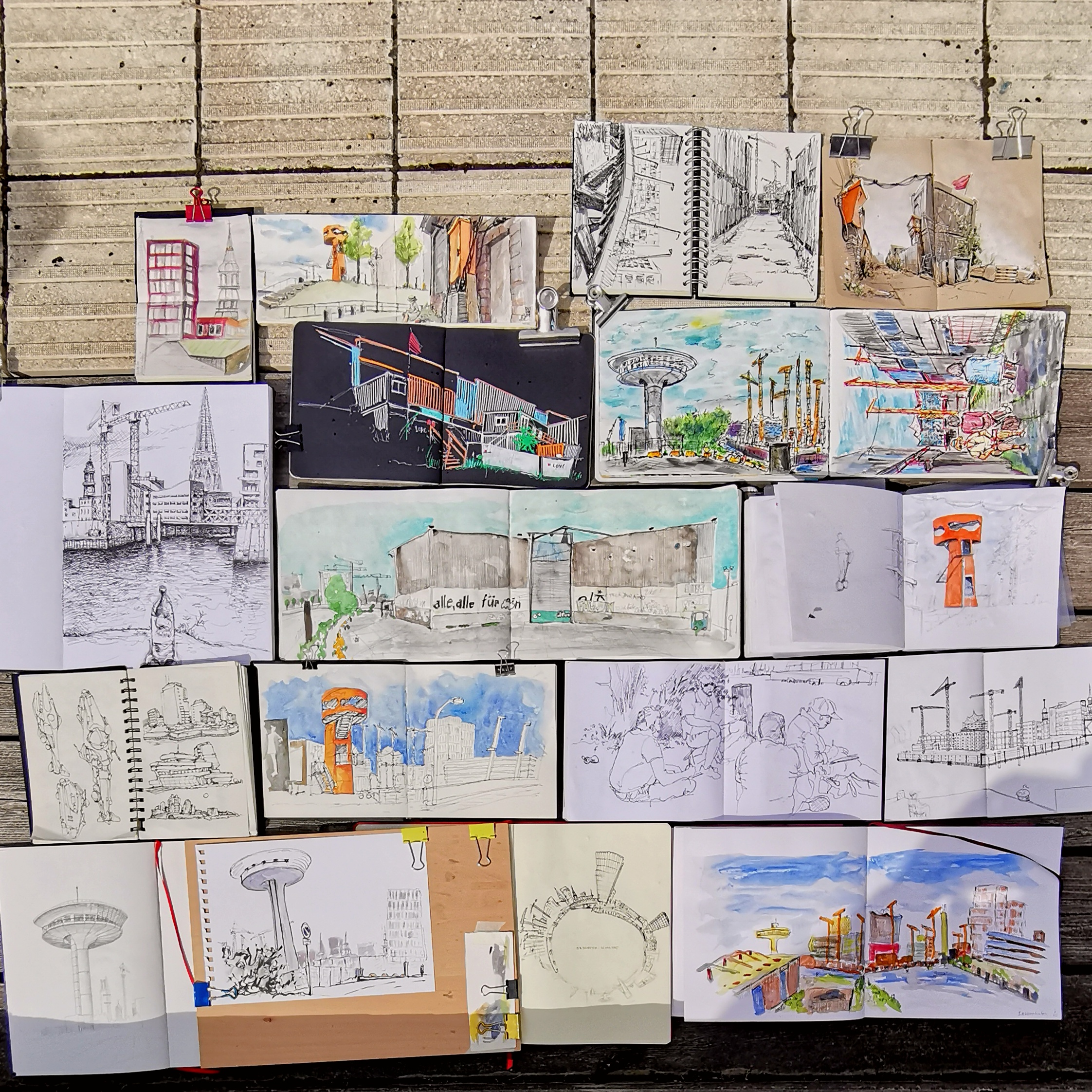 URBAN SKETCHERS HAMBURG Sketchen mit viel Platz und Sonne im Hafengelände und anschliessend im Jardin&Coffee. #urbansketchershamburg #baakenhafen #SKETCHING #zeichnen #aquarell #endlichmalwiedergesehen