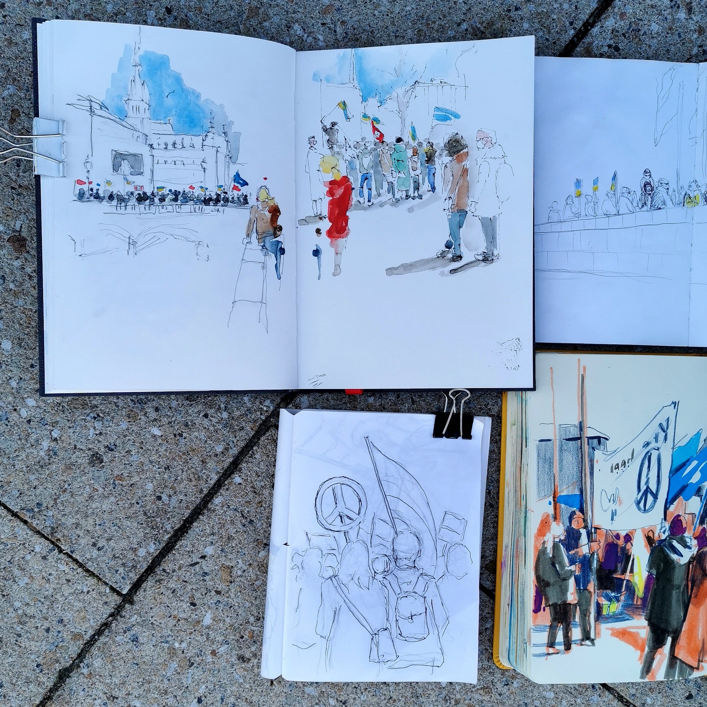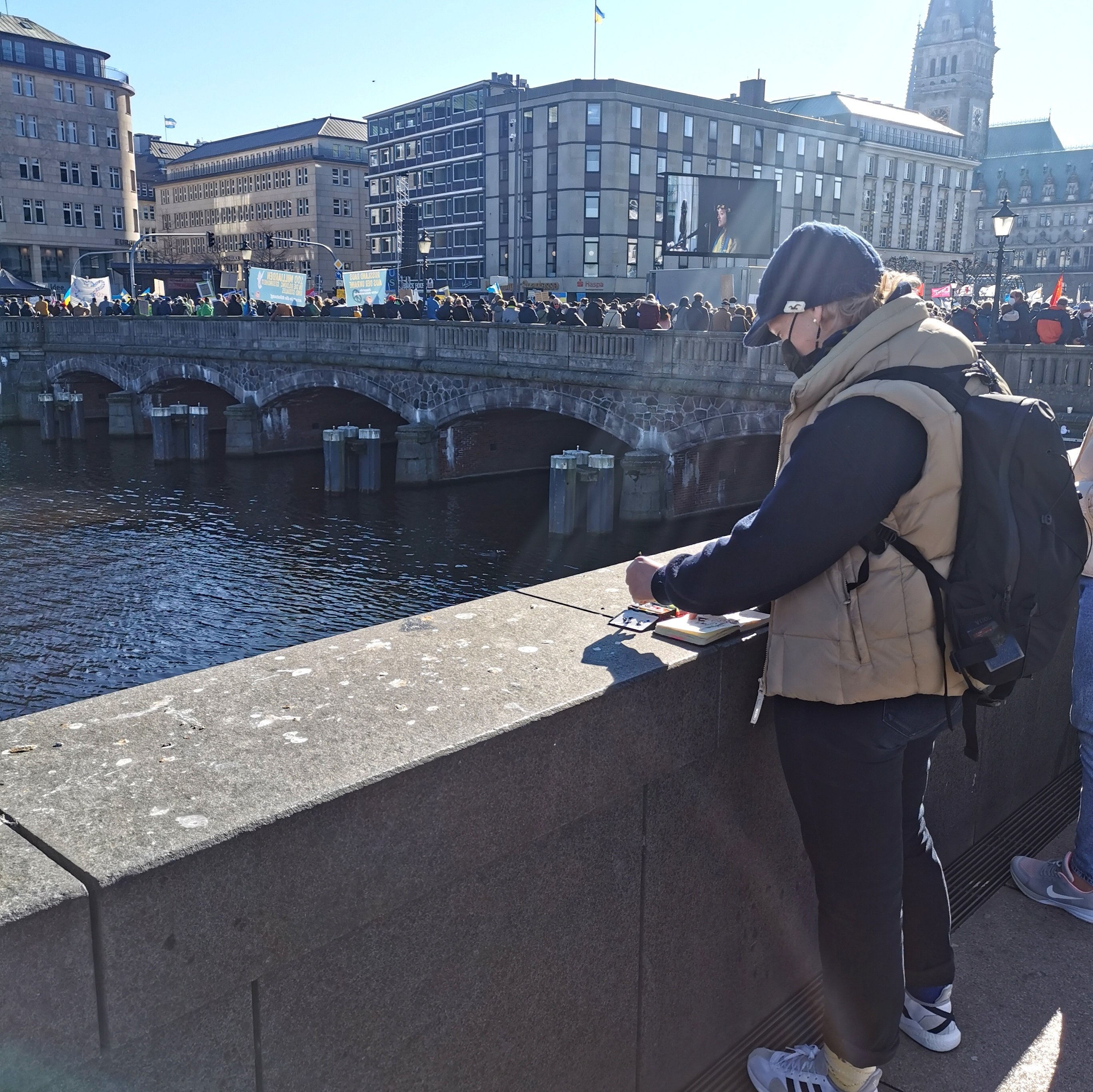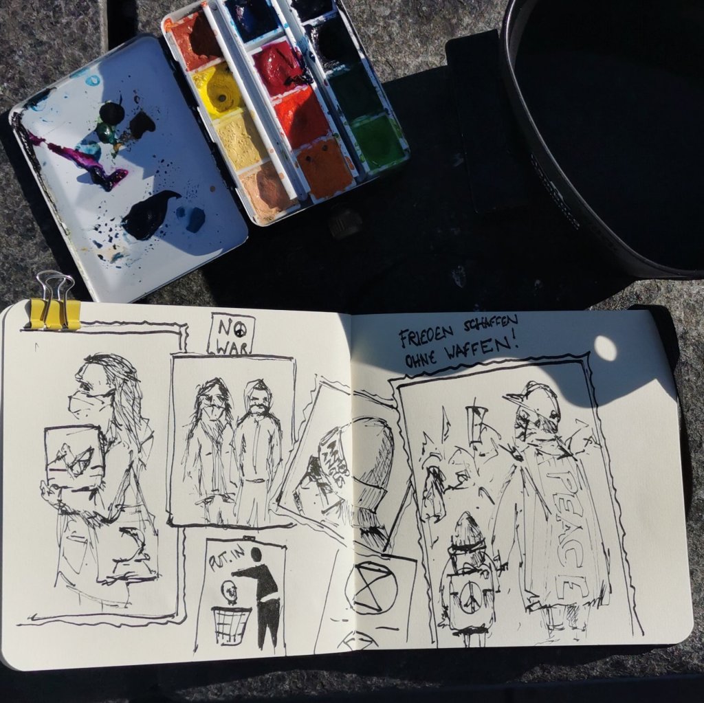 Sketchen auf der Friedensdemo Sketchen auf der Friedensdemo in Hamburg. #USkHHgegenKrieg #urbansketchershamburg #urbansketchers #sketchbook #urbansketchersodessa #urbansketching #peace #peaceforukraine #Skizze #uskchapters Ähnliche Beiträge