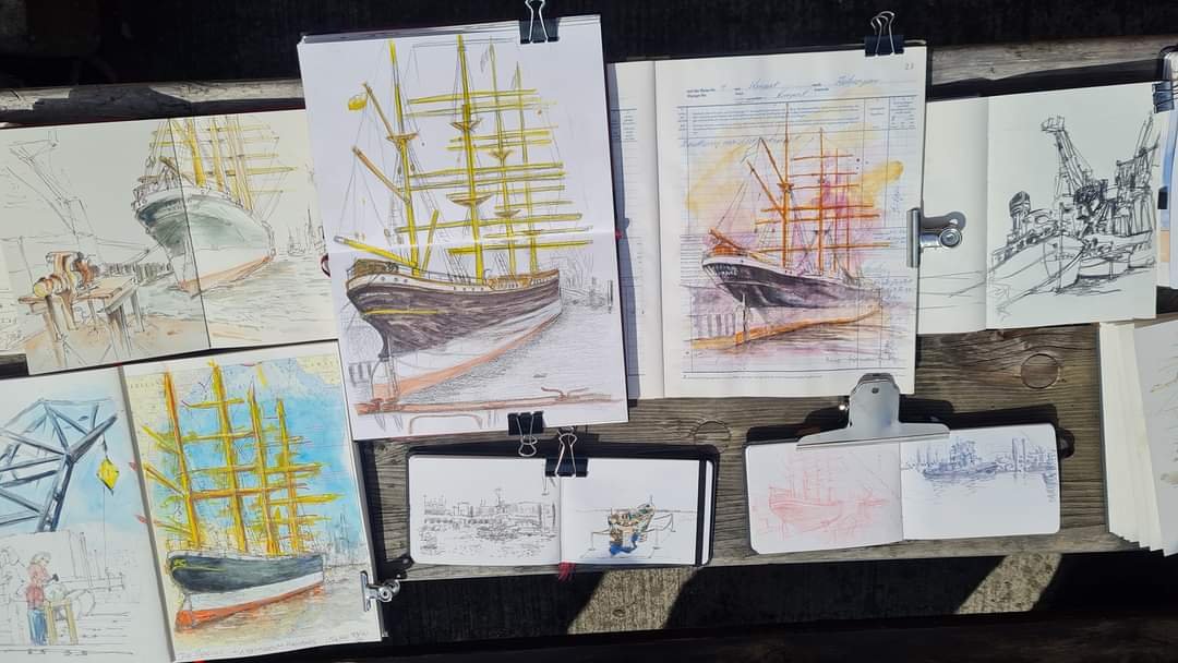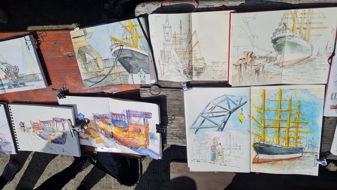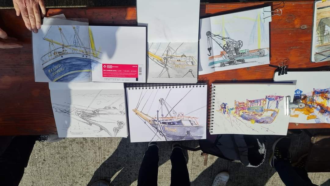 Tolle Bilder sind heute Nachmittag im Hafenmuseum Hamburg entstanden. Rund 20 Sketcher verteilten sich auf dem weitläufigen Gelände. Das Wetter spielte mit und es gab neben der Peking einiges Neues zu entdecken. Danke für die Orga Jürgen. Text & Fotos: Tine
