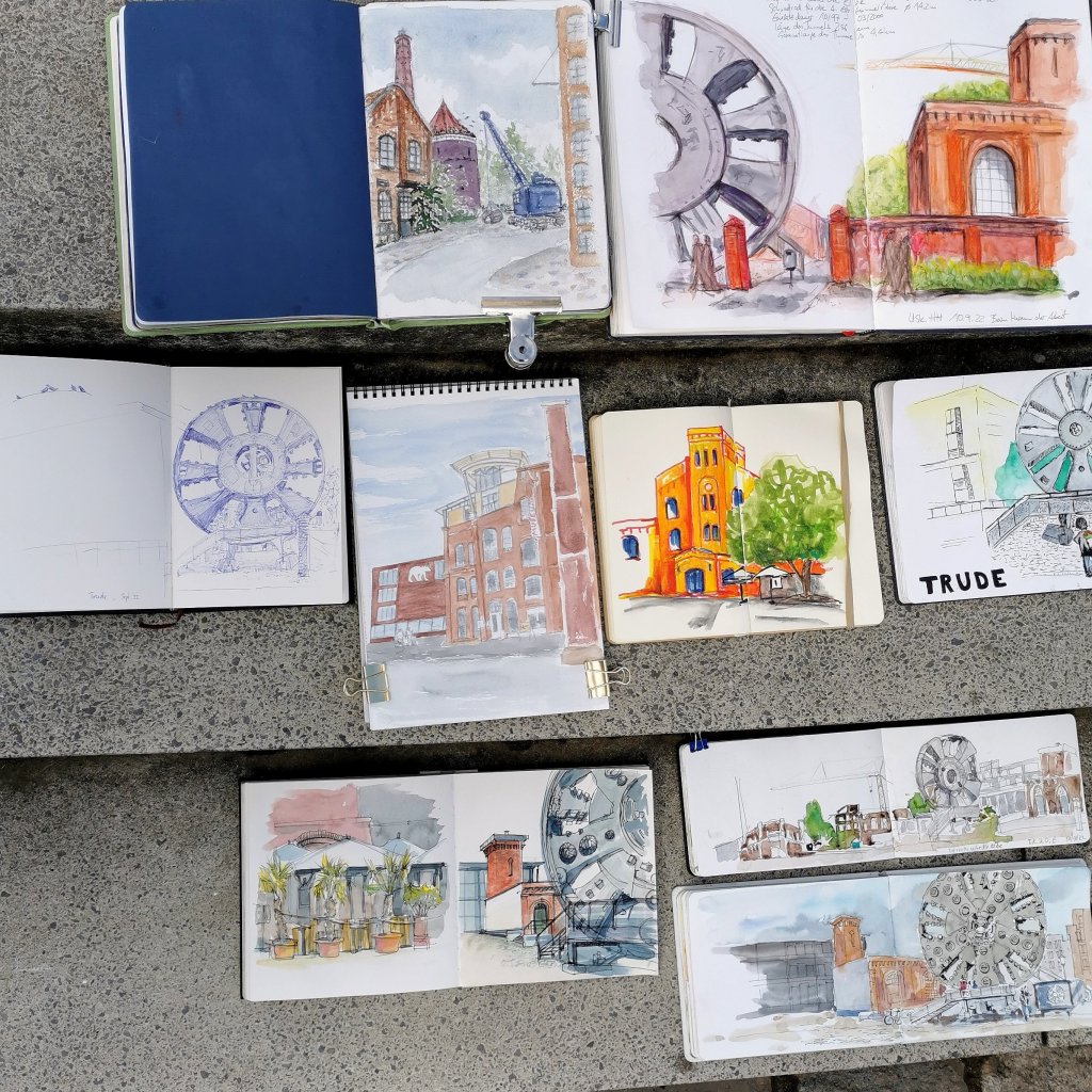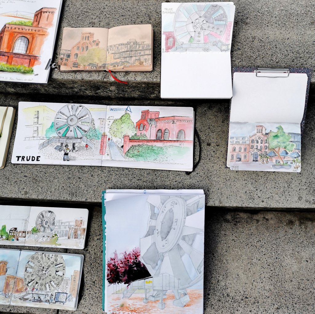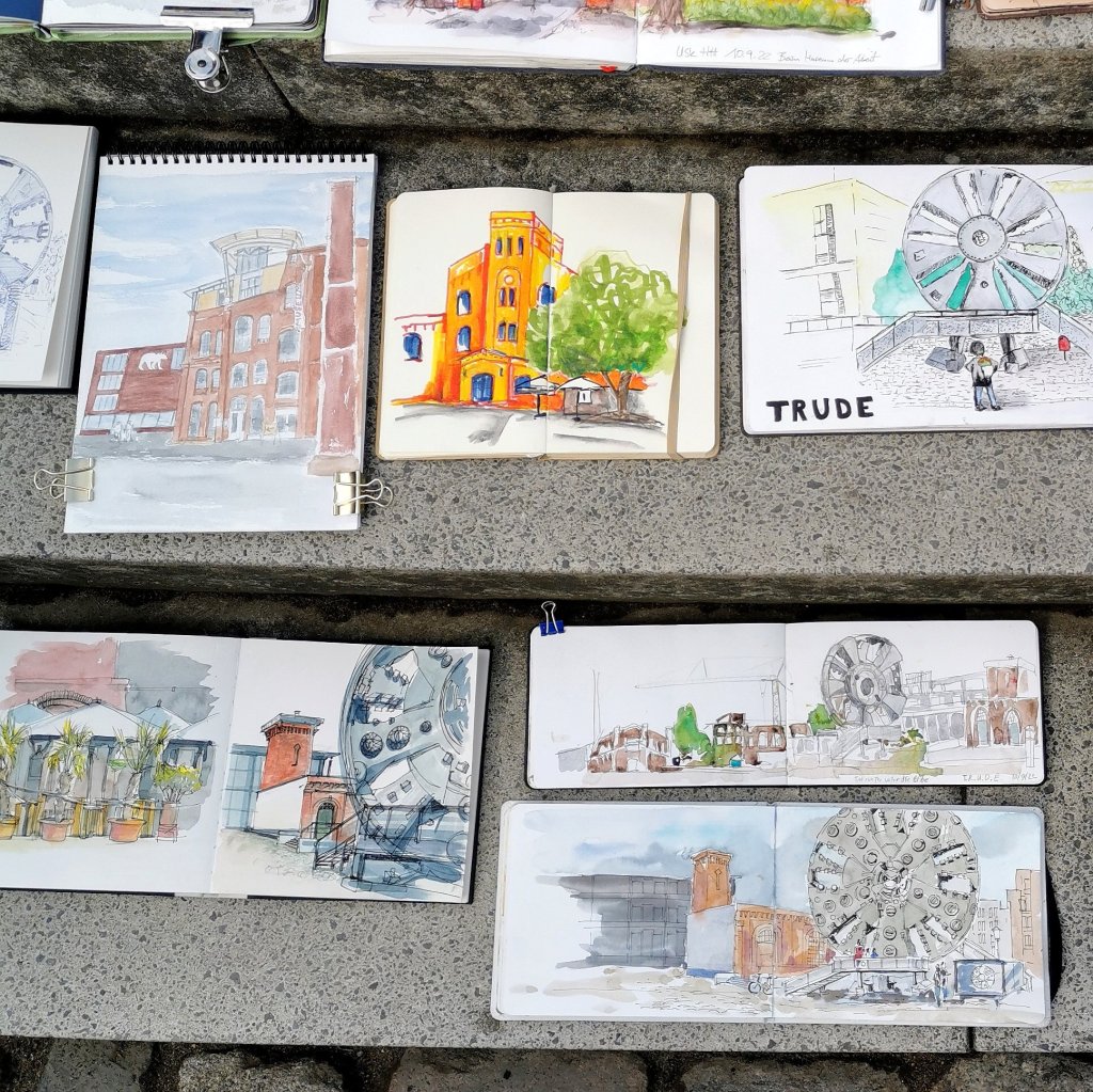 TRUDE #Sketchertreffen an der #TRUDE, dem #Elbtunnelbohrer in Barmbek. *Tief runter unter die Elbe* – eher hoch mit dem Kopf hieß es heute beim zeichnen. @histmuseenhh #urbansketchershamburg #Skizze #sketching #hamburg #elbtunnel #uskhamburg Ähnliche Beiträge
