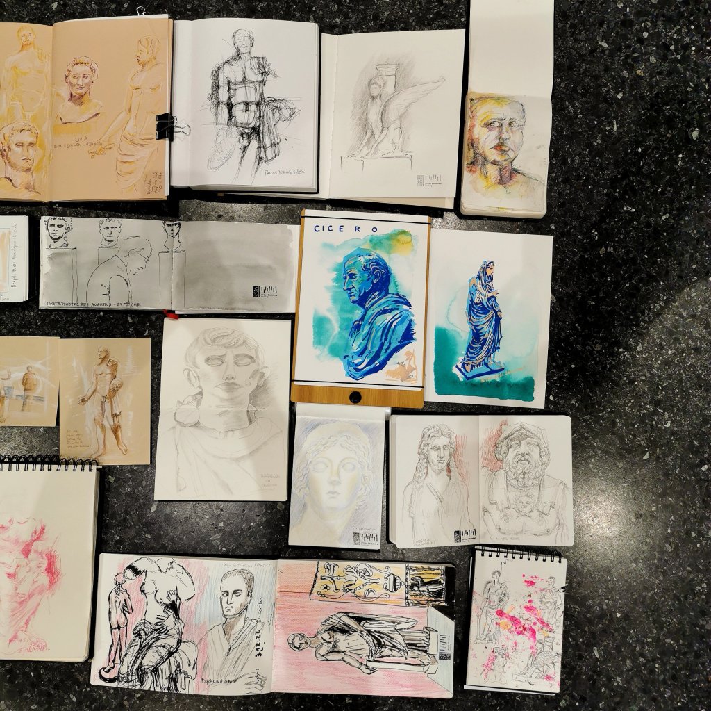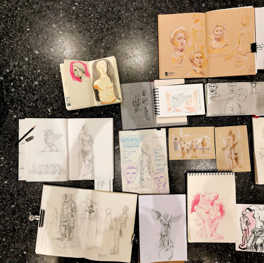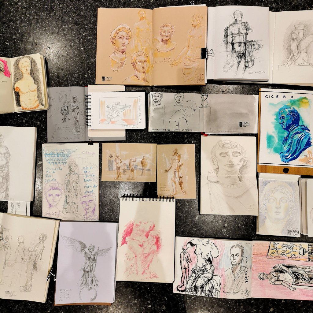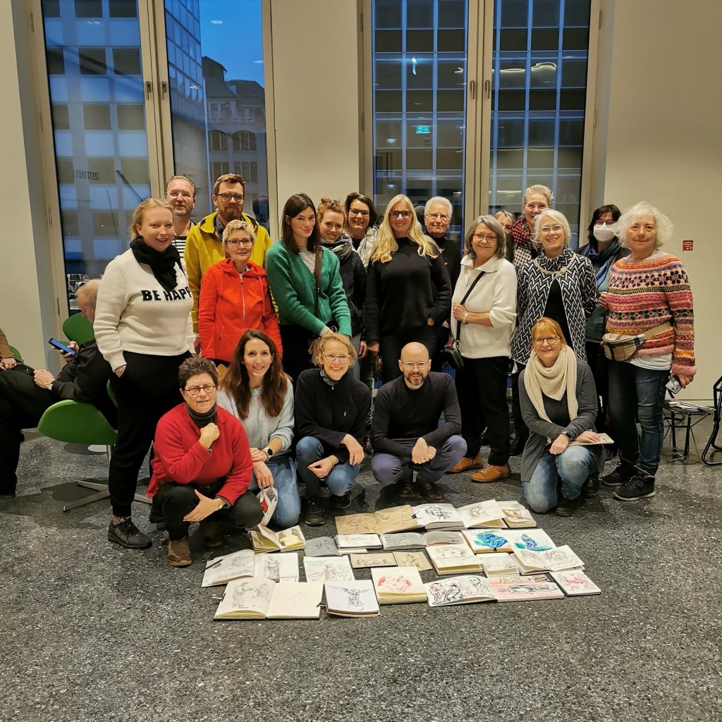 HAPPY SKETCHING mit Augustus & Livia – Sie haben uns auf eine kleine Zeitreise ins erste römische Kaiserreich mitgenommen. Trotz krankheitsbedingter Absagen (Euch gute Besserung!) waren wir 23 SketcherInnen gestern im @buceriuskunstforum . In der Ausstellung selbst darf man nicht fotografieren – von daher seht ihr auf den Fotos nur unser Finale. Zum Abschluss gab es noch Kaffee & Mehr im Cotidiano nebenan.