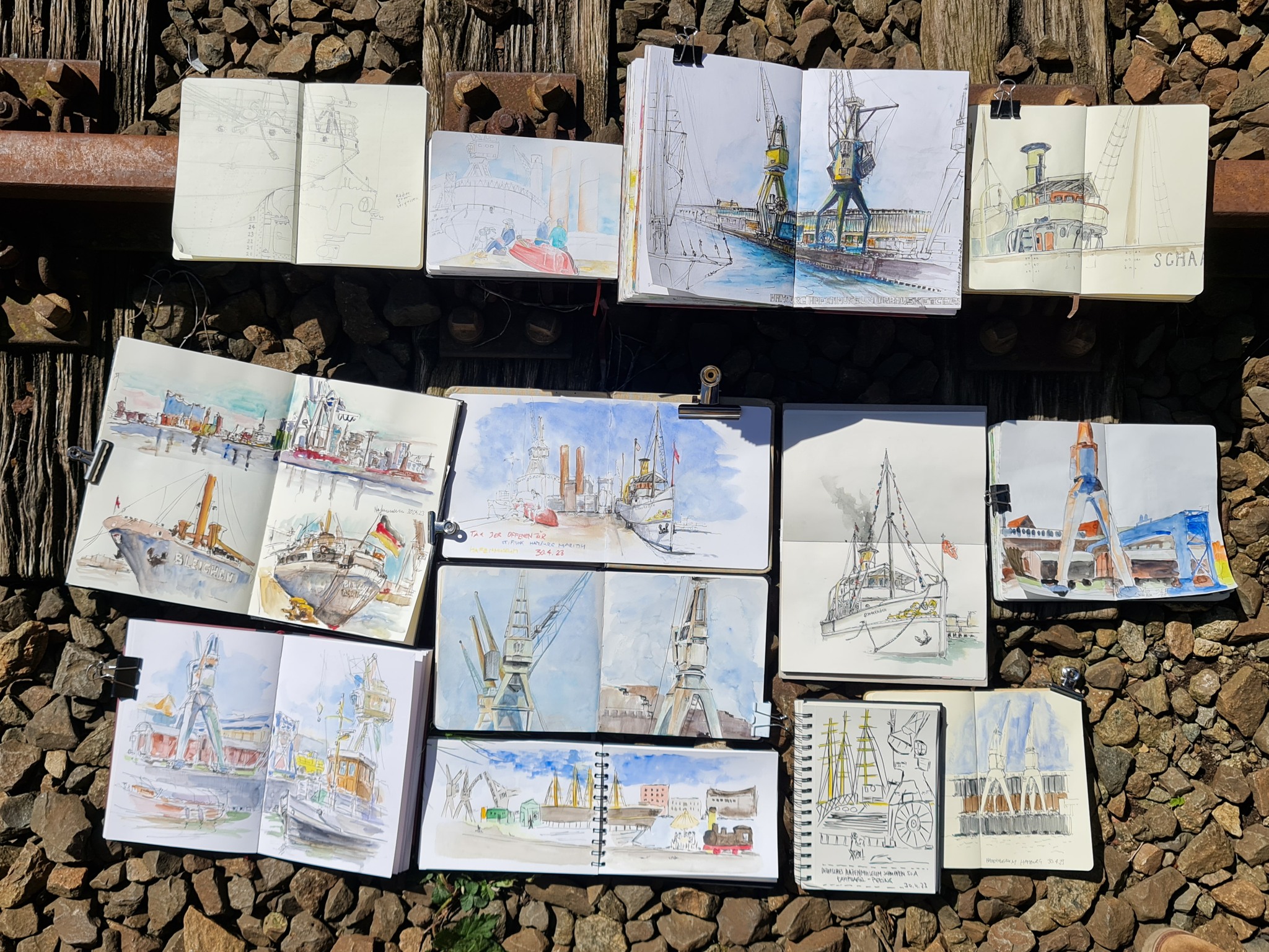 Hafenmuseum Hamburg Wir hatten Sonntag einen wunderbar entspannten Sketchtag im Hafenmuseum. Saßen in der Sonne neben historischen Schiffen, hörten in angenehmer Lautstärke beschwingte Musik und ließen die Pinsel dazu tanzen. Ähnliche Beiträge