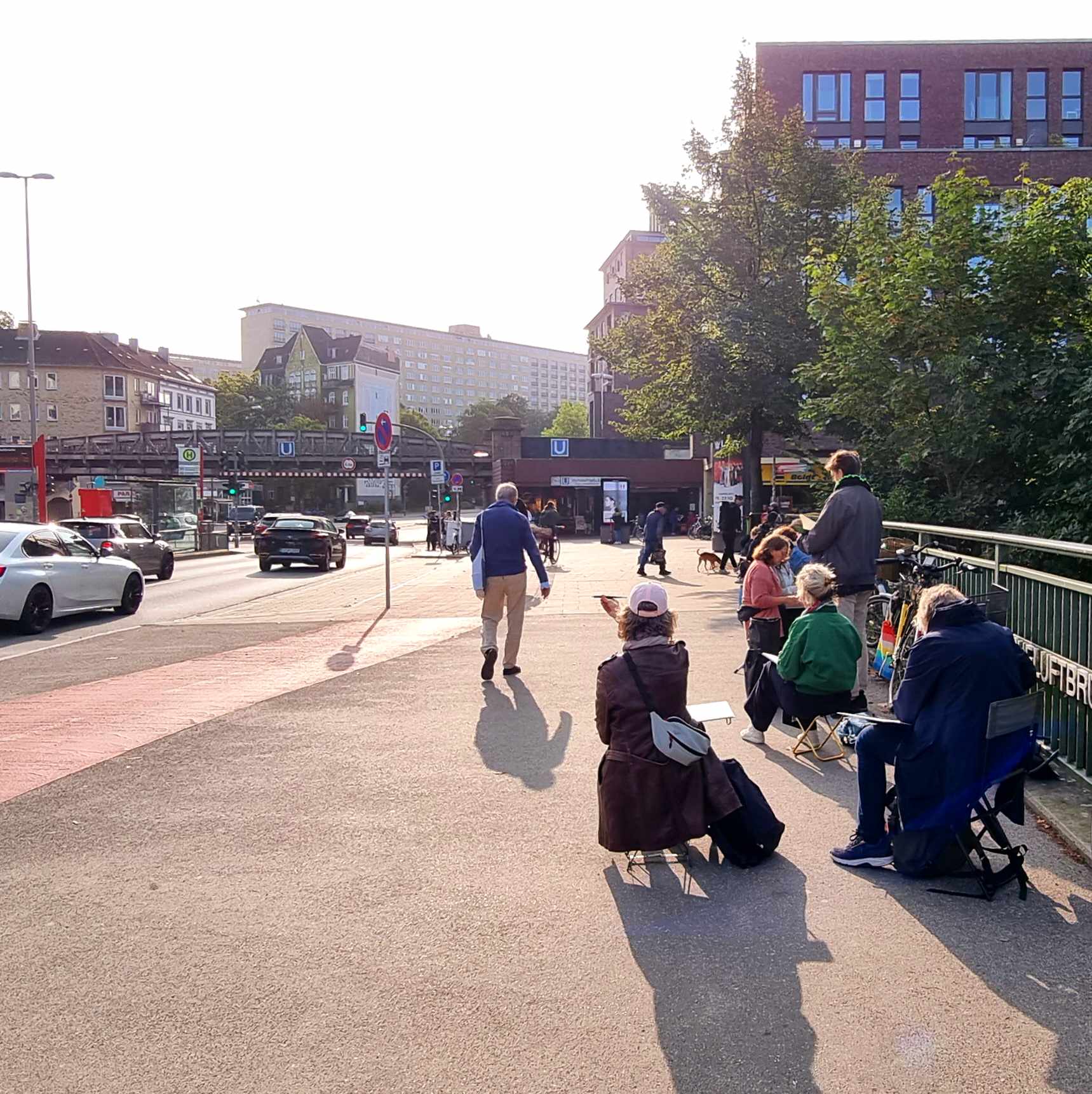 Sketchwalks in den Hamburger Vierteln. Gestern sind wir in Hoheluft damit gestartet. Es wurde an der Hohenluftbrücke, im Falkenriedquatier, bei den Grindelhochhäusern und zum Abschluss im Café Little Amsterdam gezeichnet.