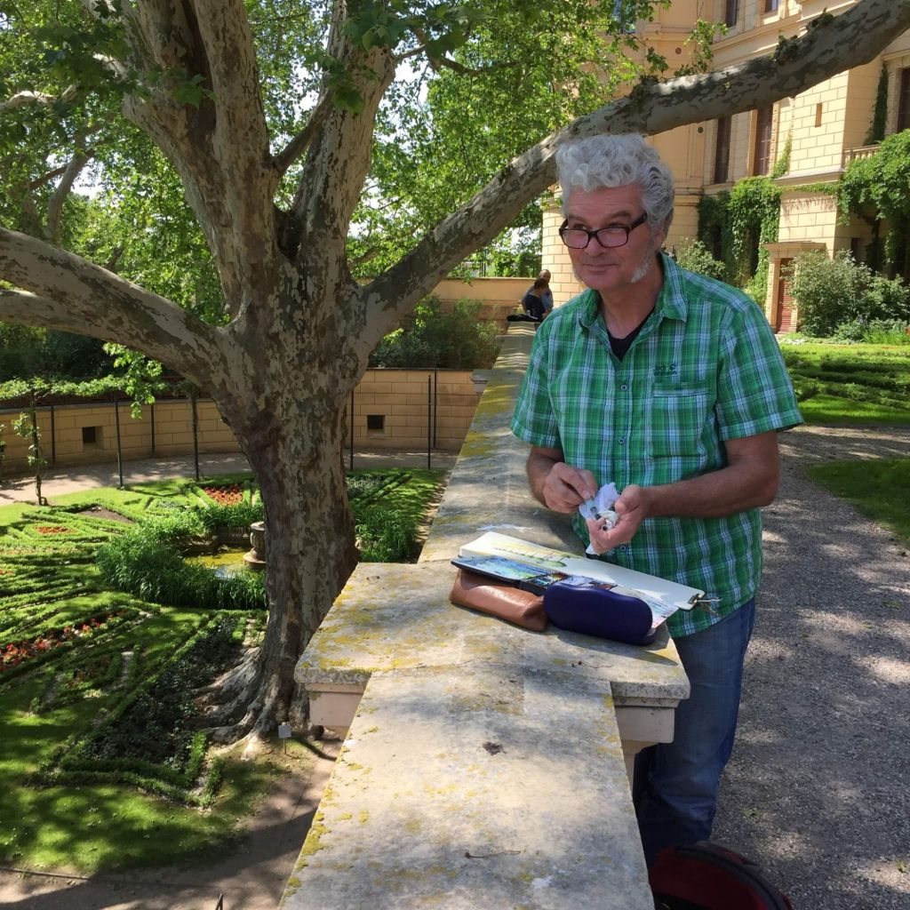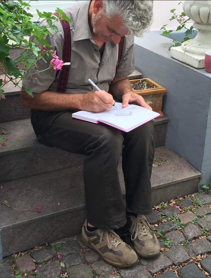 Er war der allererste Urban Sketcher, den ich vor ungefähr 10 Jahren in Hamburg kennenlernte. Ich war noch nicht so lange in der Stadt und kam ganz ahnungslos zu einem der ersten, damals monatlichen Treffen. Ich war etwas früh dran und wusste nicht genau, wie das ablaufen sollte. Da saß am Treffpunkt bereits ein Zeichner mit unverkennbarer Tolle und hat mich an die Hand genommen. Unvorstellbar, dass er weg ist.