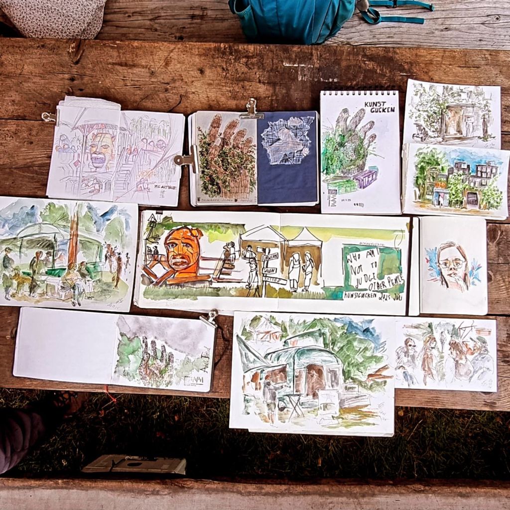 Danke für das tolle Fest @msartville #msartville #kunstgucken mit den Urban Sketchers Hamburg. Viele spannende Kunstprojekte, Kunst Mitmach-Aktionen und wunderbare Ort waren zu entdecken. #Skizzen #urbansketching #msartville2025 #uskhamburg #sketching