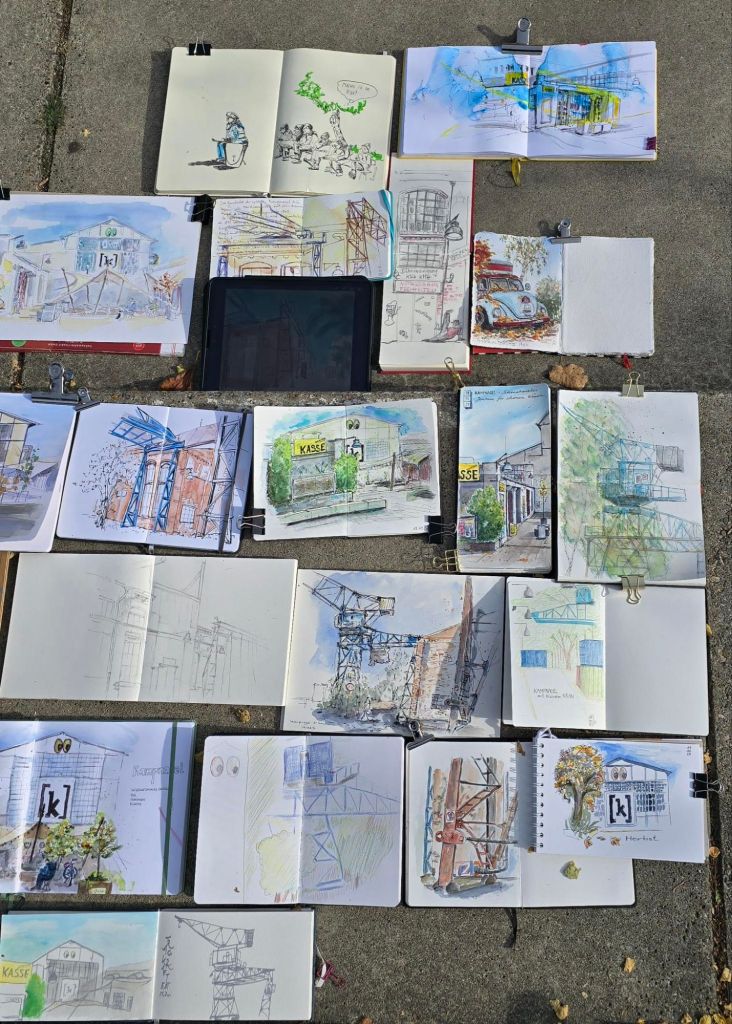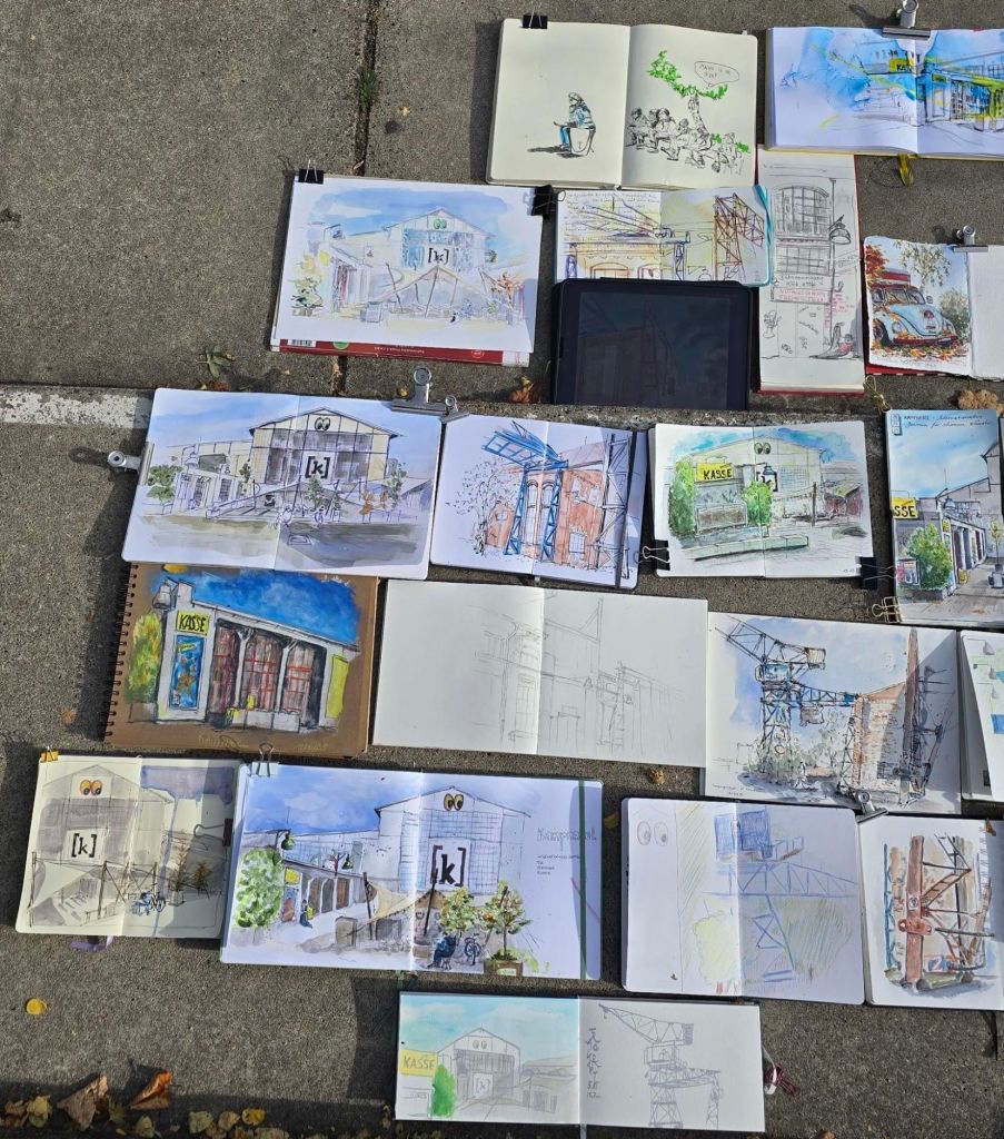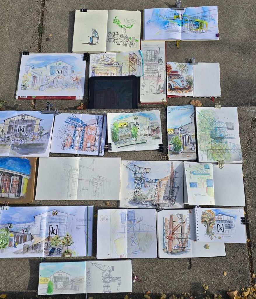 Bei anfänglichen 6 Grad haben sich heute ca. 25 Sketchies auf dem Gelände von Kampnagel getroffen. Die Motivauswahl richtete sich primär nach den Sonnenplätzen 😃.